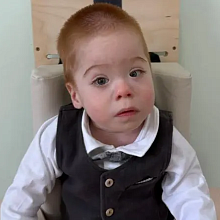 Борису 2 года. Мальчик летел из Амурской области в Москву на самолете 9 часов. Он - ласковый рыжеволосый мальчик с яркими голубыми глазами. Любит общаться и радуется, когда его берут на руки. На контакт со взрослыми идёт охотно и быстро.