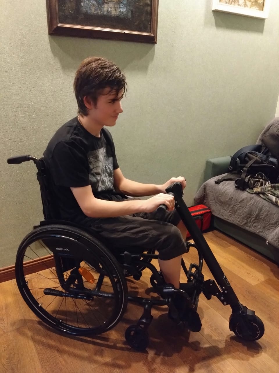 Влад пользуется коляской и приставкой и очень благодарен всем, кто помогал ему получить ее!